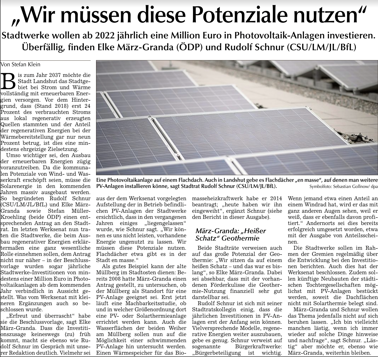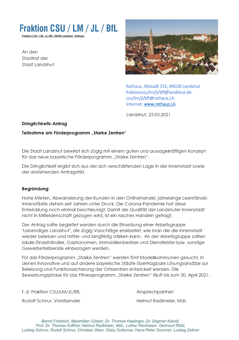 Seit 1996 bin ich Mitglied des Landshuter Stadtrats und bringe ich mich zur zukunftssicheren Entwicklung meiner Heimat mit meinem Wissen, meinen Erfahrungen, meinem Engagement, sowie meiner Vernetzung zum Wohl unserer Stadt ein.