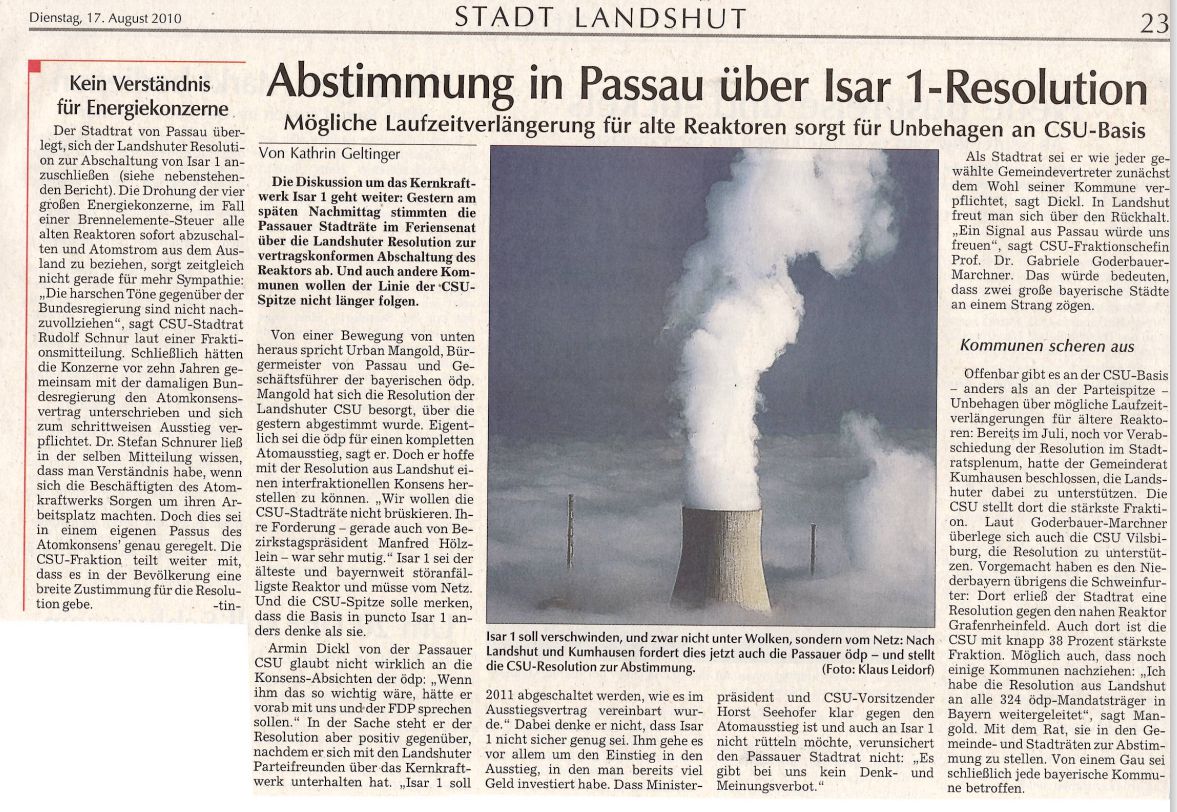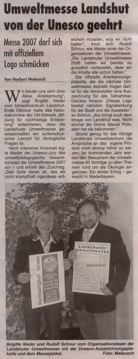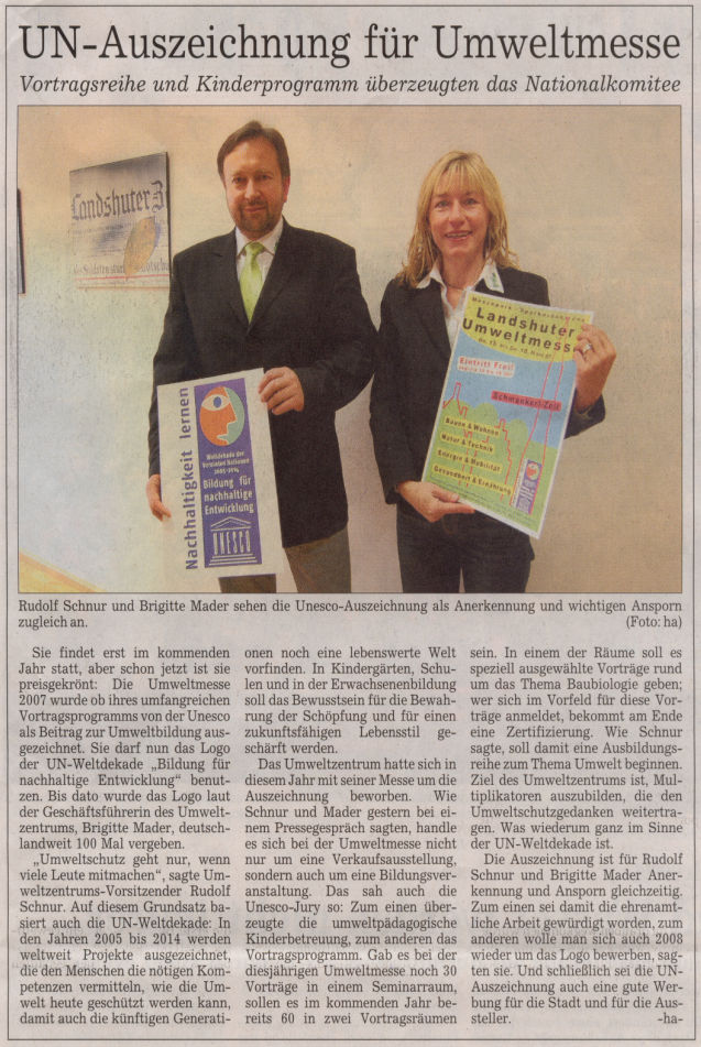Insbesondere als Veranstalter des Landshuter UmweltForum (1996) und der