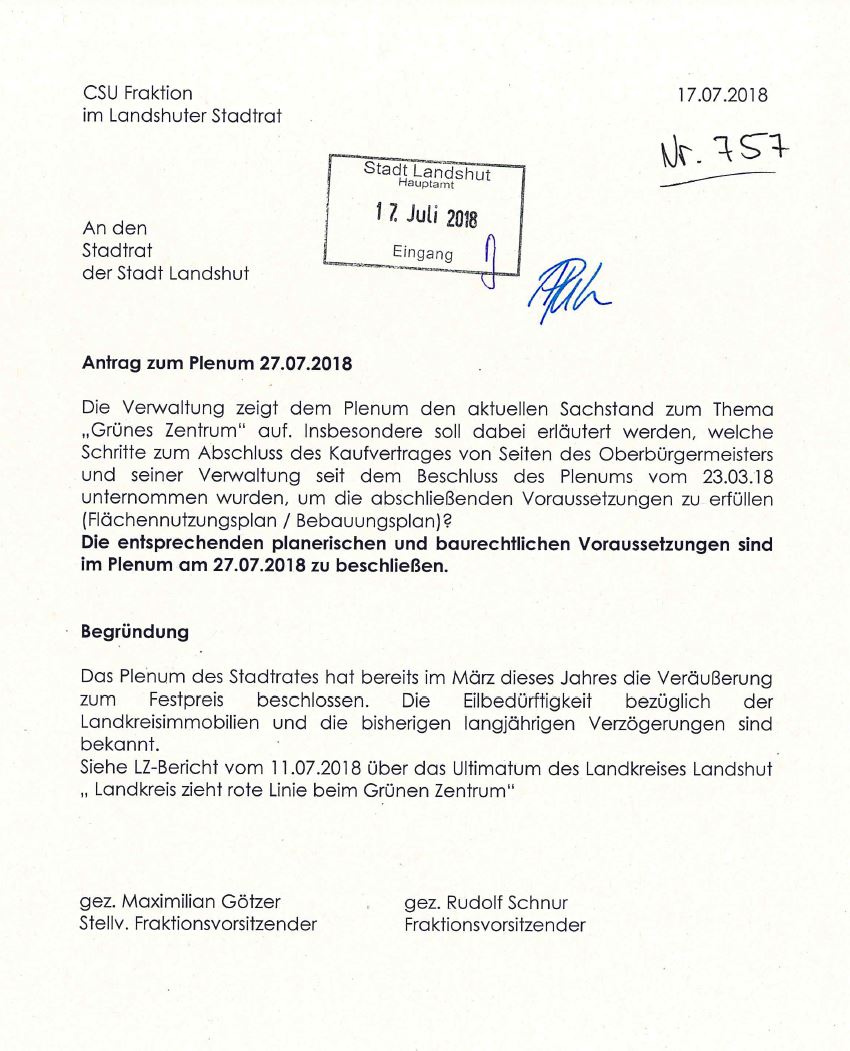 18 / 0757 / Aktueller Sachstand zum Grünen Zentrum