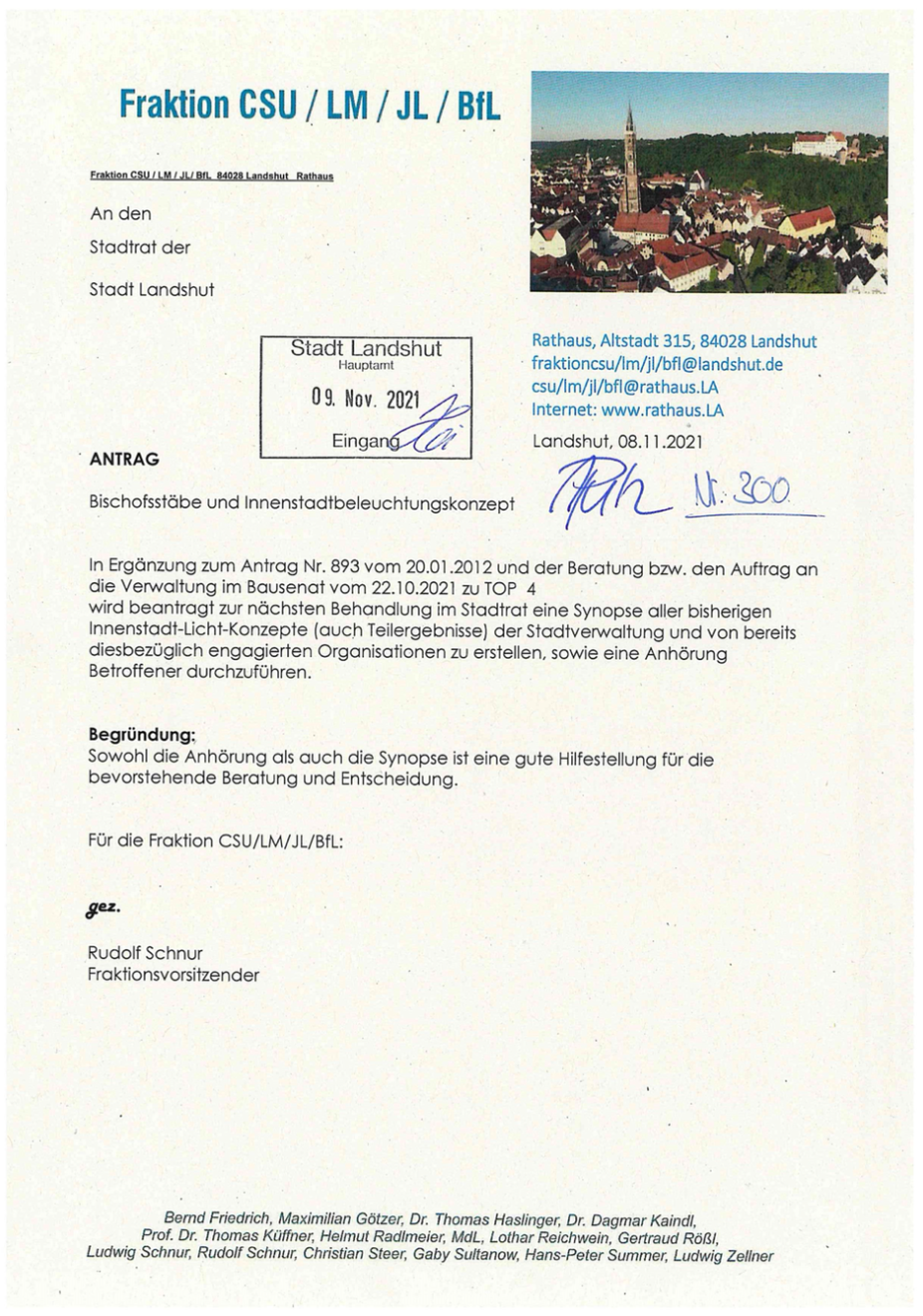 Rudolf Schnur - Landshuter Stadtrat - Anträge