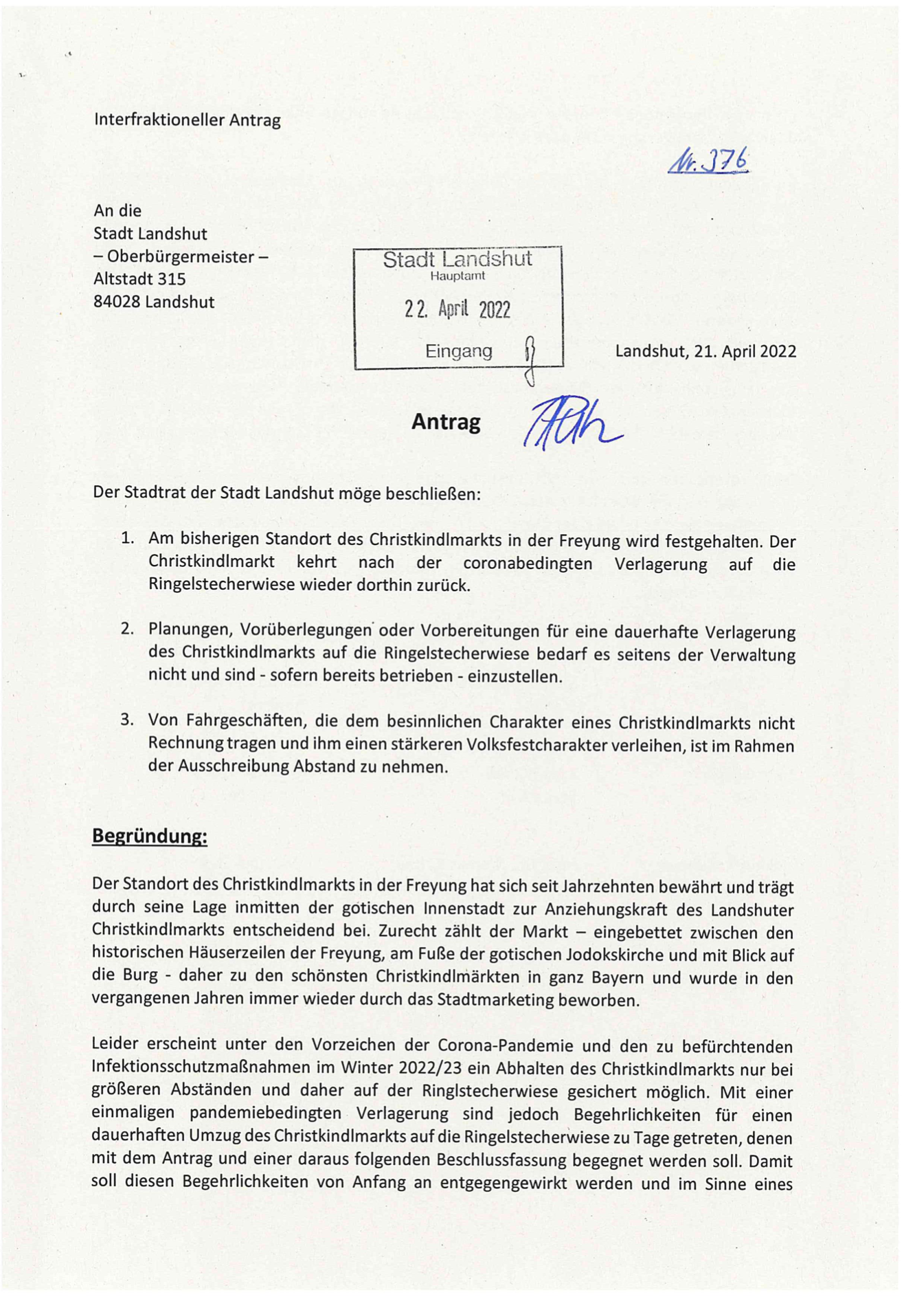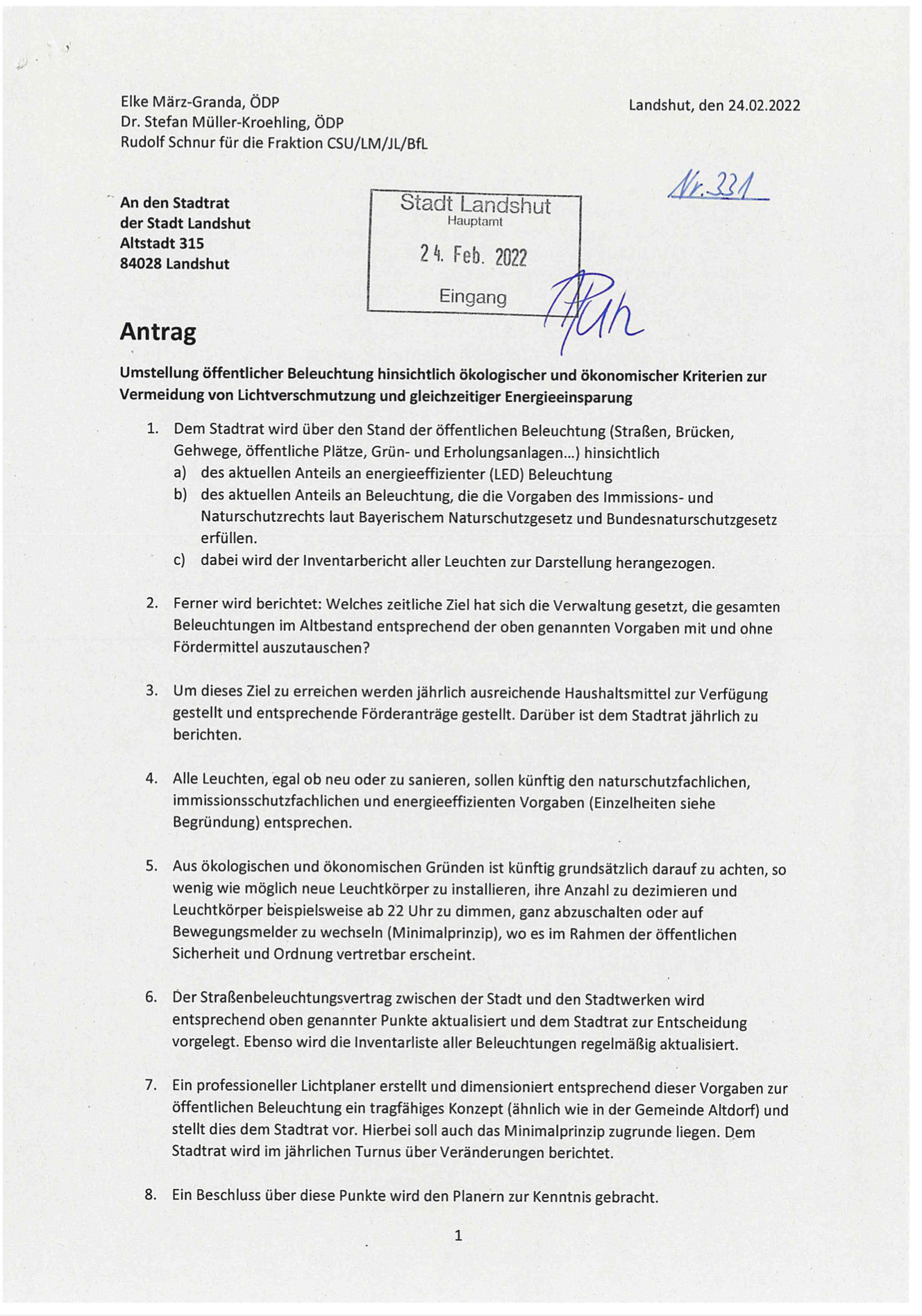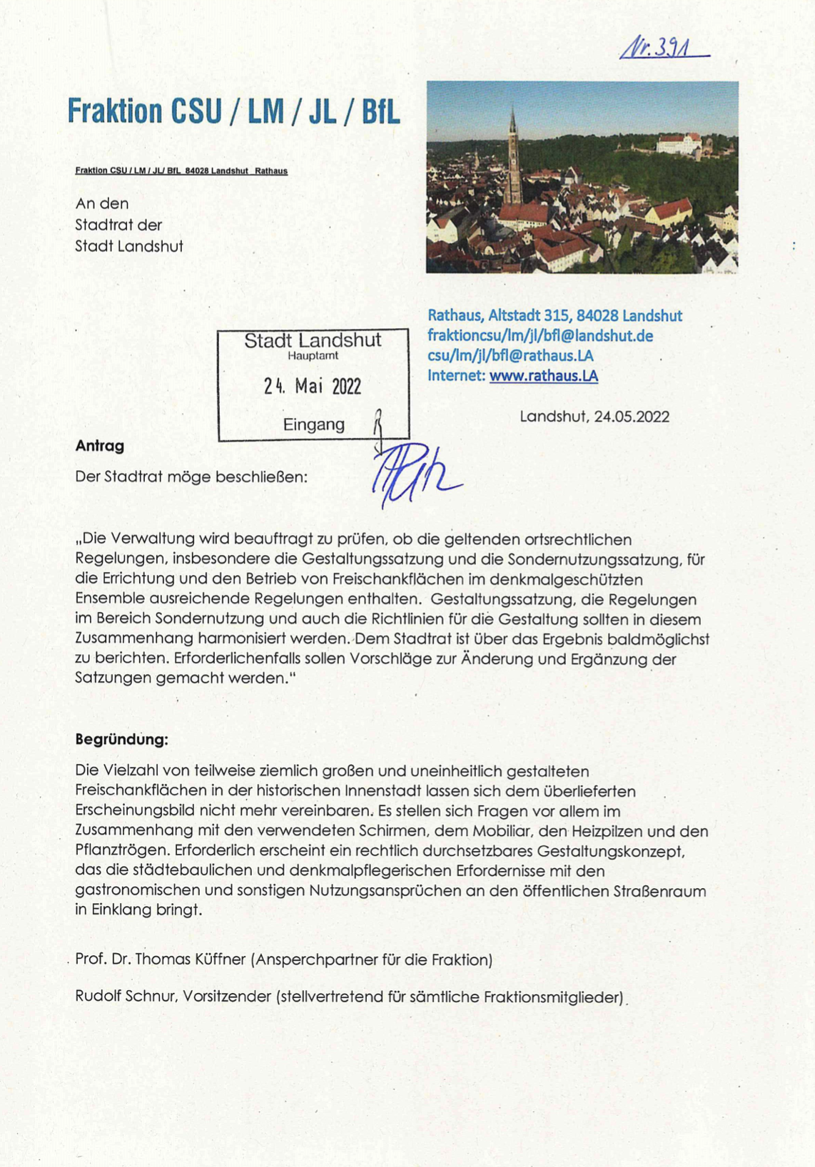 Der Stadtrat der Stadt Landshut möge beschließen: ...