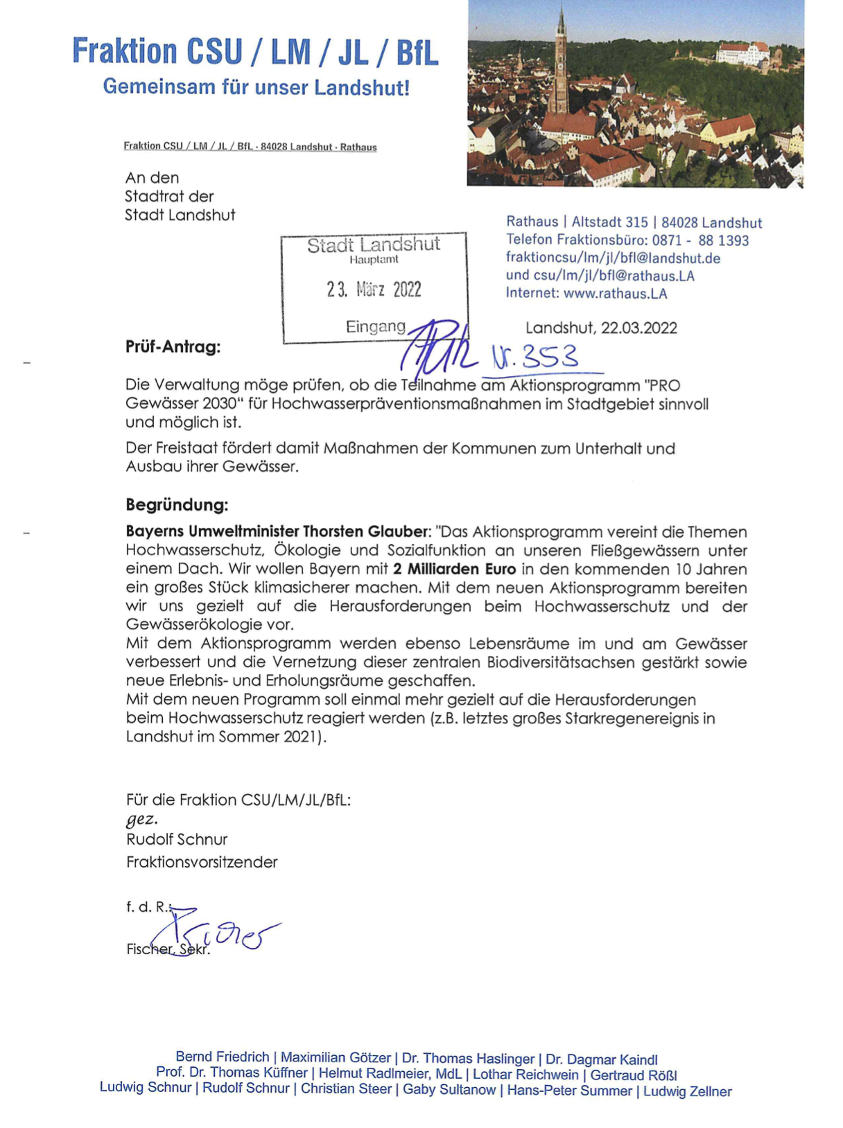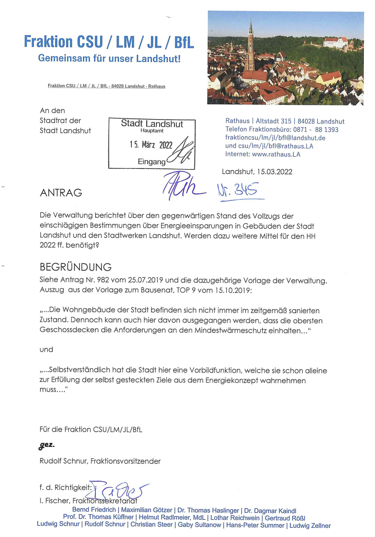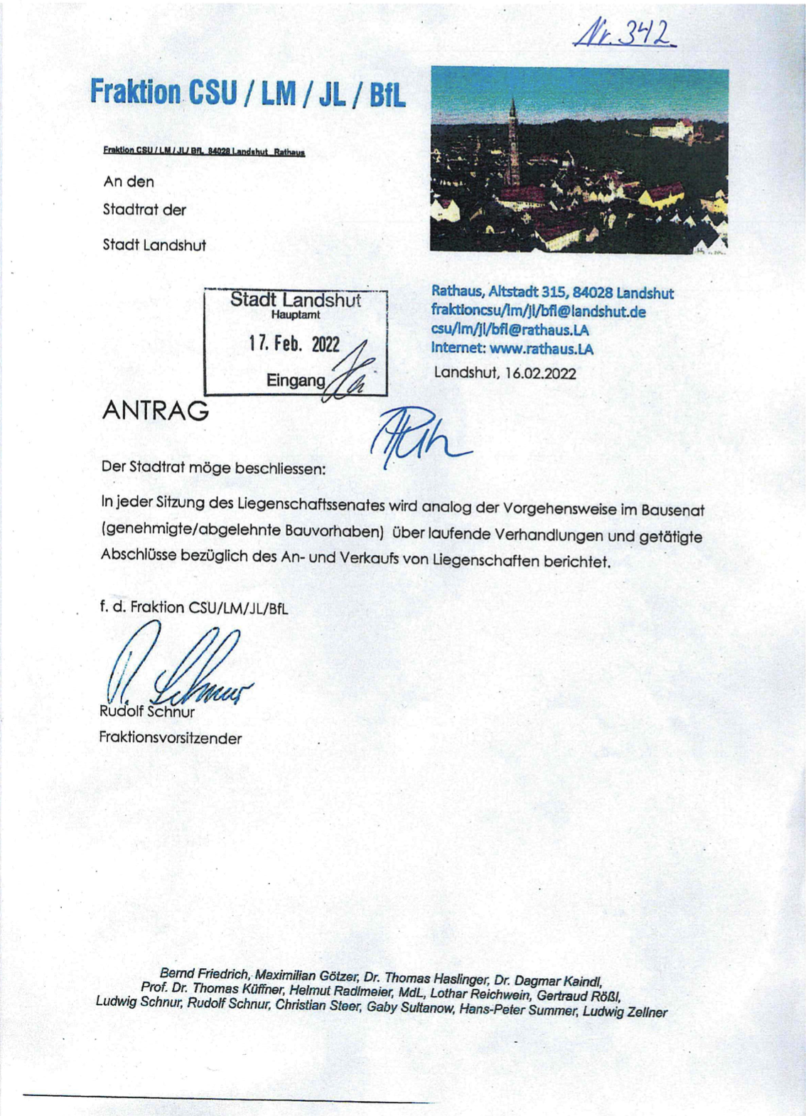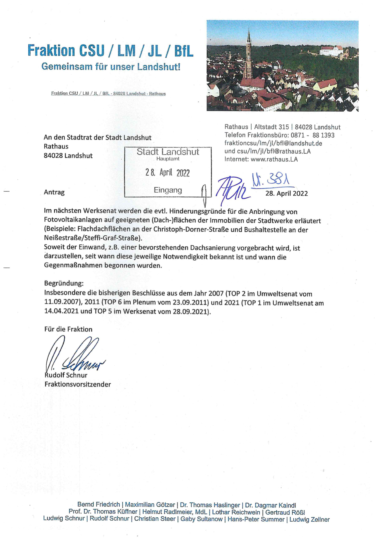 Rudolf Schnur - Landshuter Stadtrat - Anträge