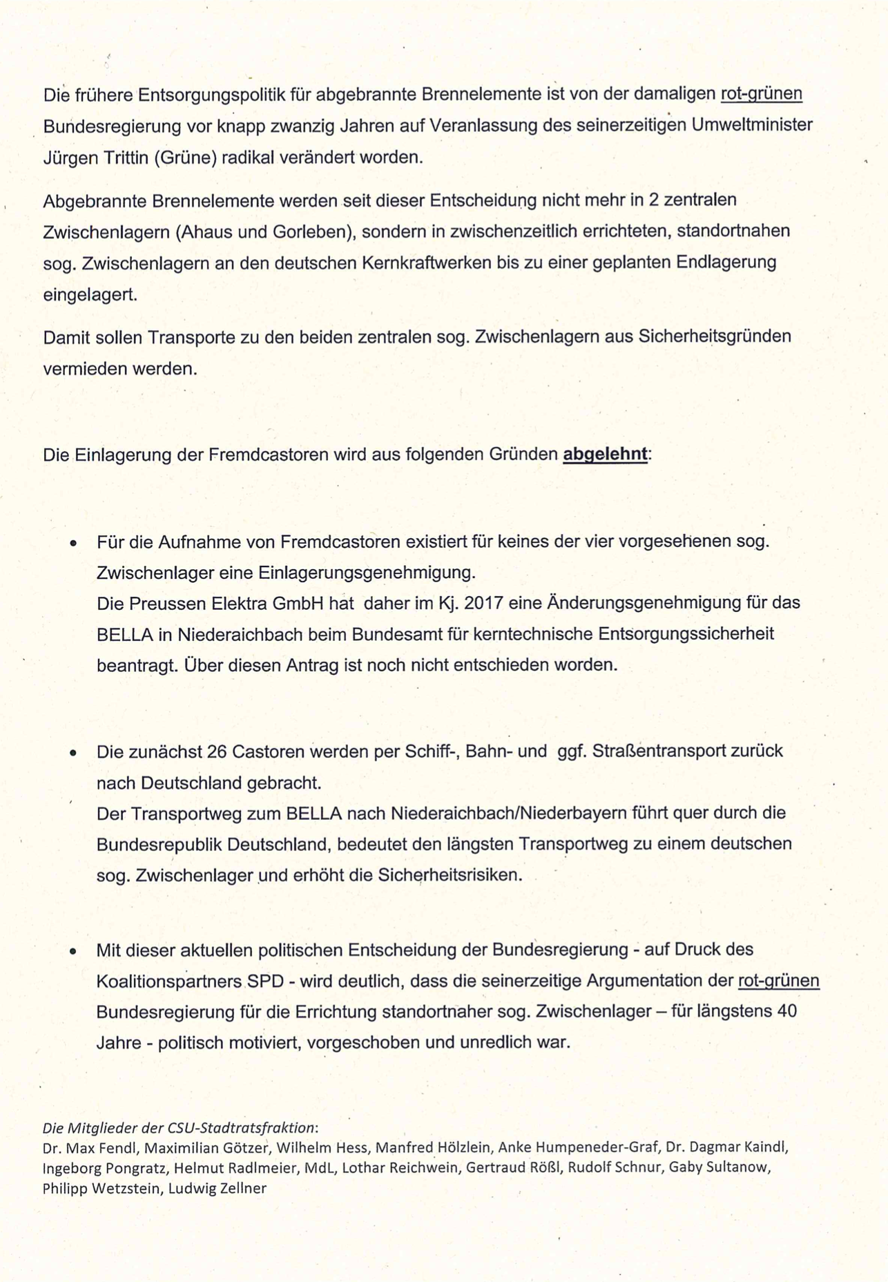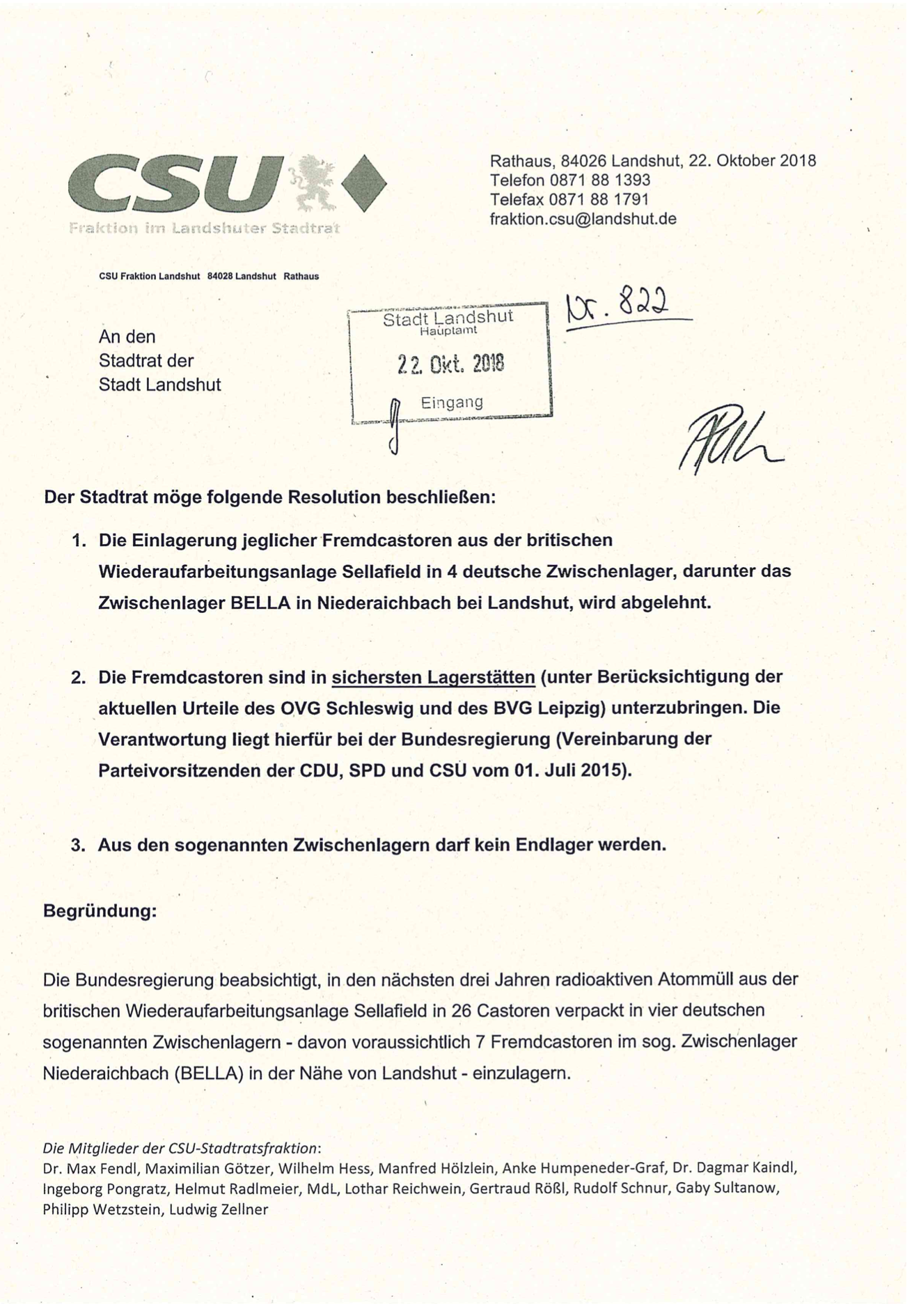 Rudolf Schnur - Landshuter Stadtrat - Anträge