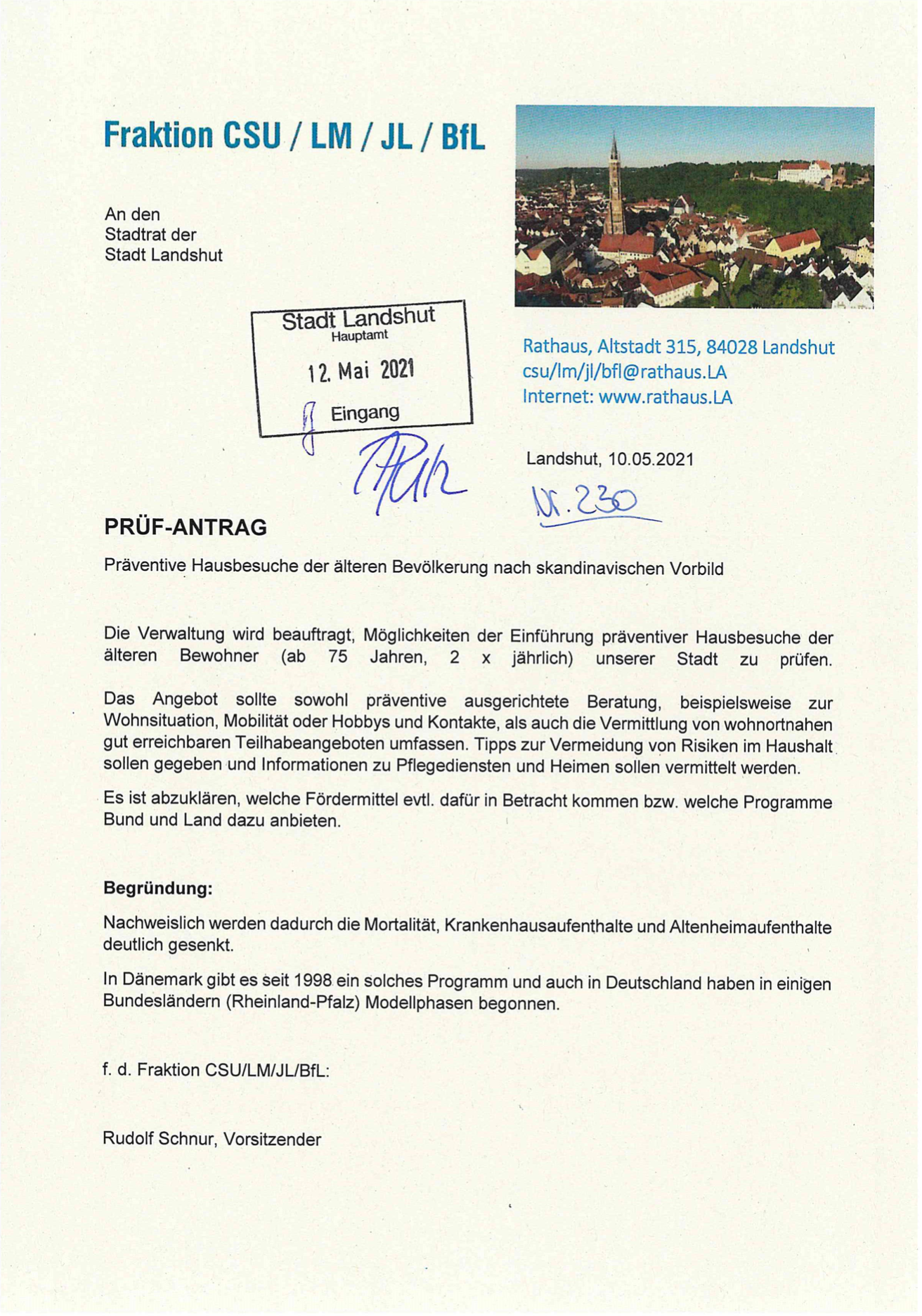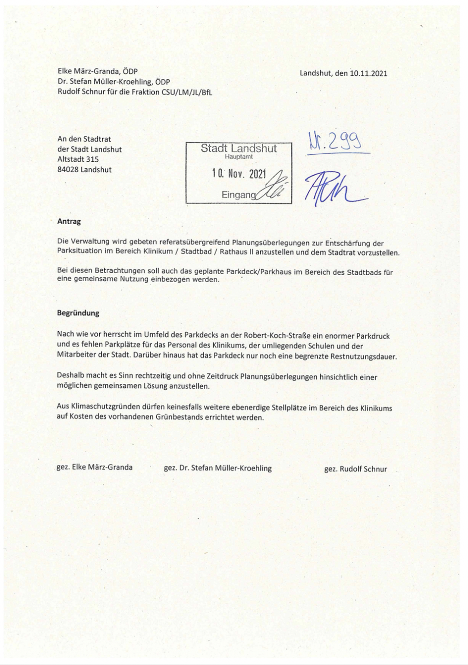 Rudolf Schnur - Landshuter Stadtrat - Anträge