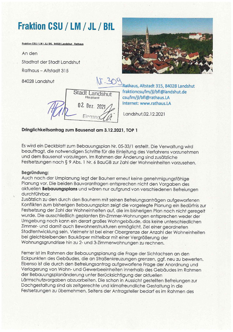 Dringlichkeitsantrag zum Bausenat am 03.12.2021, TOP 1