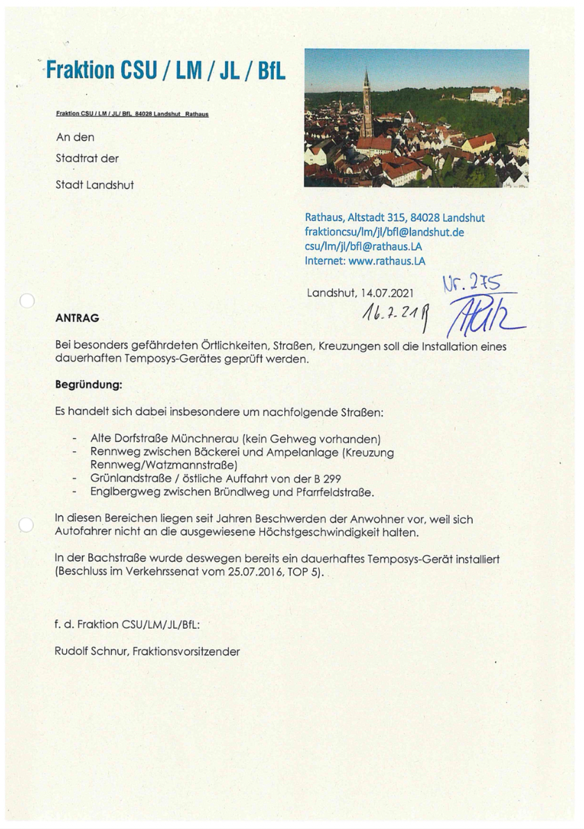 Rudolf Schnur - Landshuter Stadtrat - Anträge